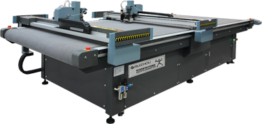 在瑞洲科技的展位現(xiàn)場,RZCRT5-1813智能數(shù)控切割機,其自首發(fā)之日起,全球總銷量已達(dá)數(shù)千臺,經(jīng)市場多年驗證,性能穩(wěn)定、表現(xiàn)卓越,深受國內(nèi)外用戶青睞; 集智能、高效于一體的智能數(shù)控切割機的,可實現(xiàn)畫線、繪圖文字標(biāo)注、壓痕、半刀切割、全刀切割一次性完成,切割速度高達(dá)1500m/s,振動刀轉(zhuǎn)速高達(dá)18000轉(zhuǎn)。同時標(biāo)配進口直線導(dǎo)軌,傳動系統(tǒng)采用進口直線導(dǎo)軌、齒條、同步帶,切割精度完全達(dá)到往返原點零誤差。